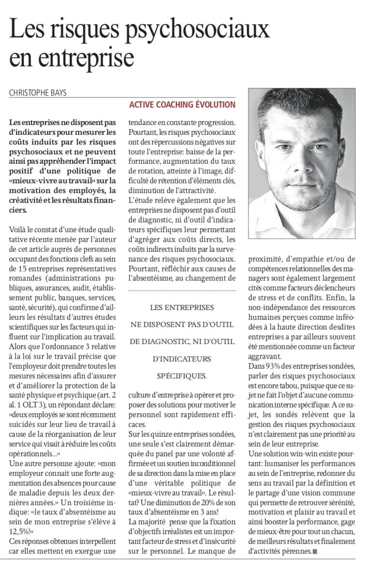 Avant la crise COVID, le SECO (Secrétariat à l'Économie) évaluait le coût des risques psychosociaux à la charge des entreprises à plus de CHF 10 MILLARDS. Un montant astronomique à imputer directement à la productivité des entreprises qui date d'avant la pandémie de COVID...